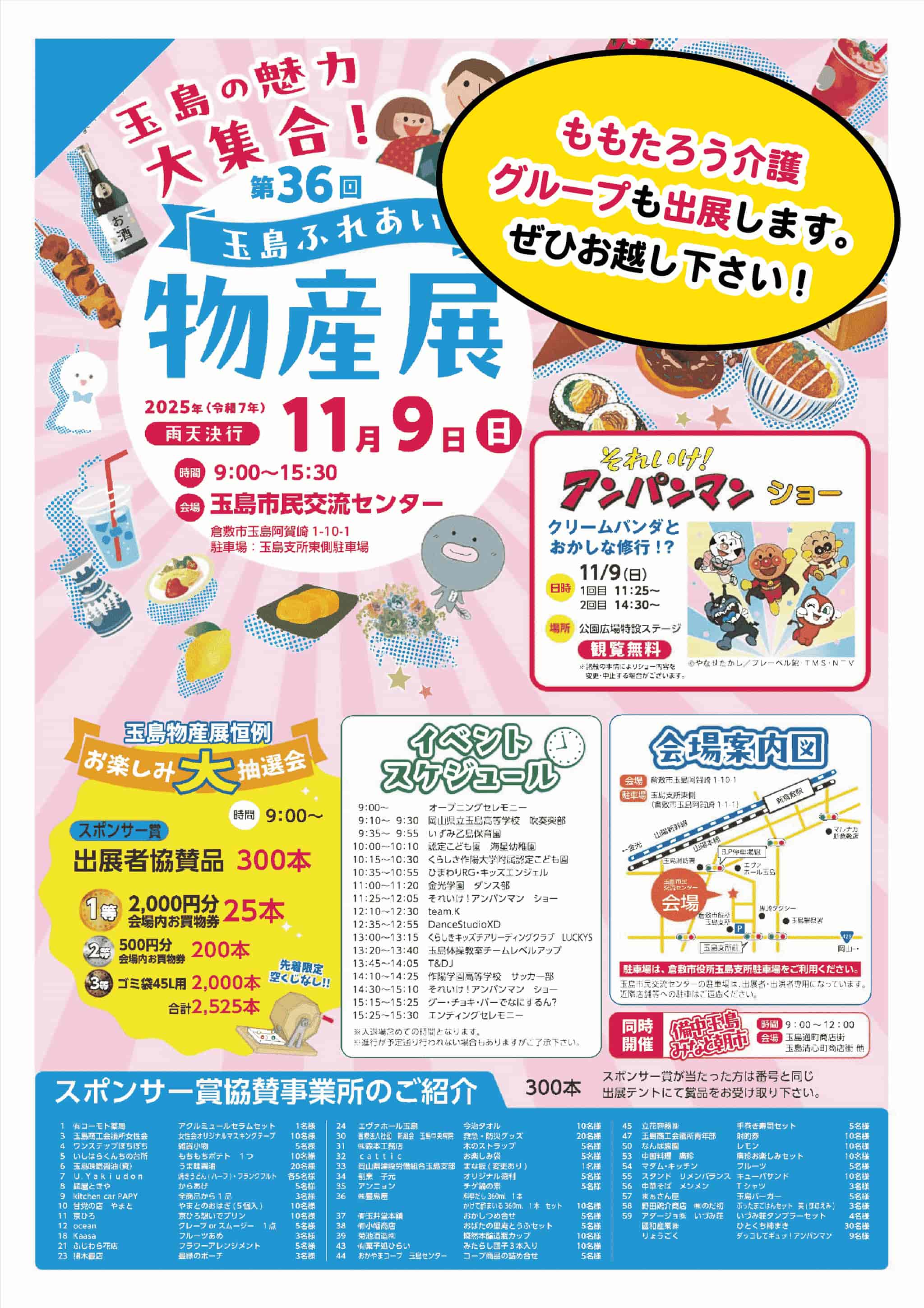 11月9日(日)玉島ふれあい物産展にももたろう介護グループも出展します♪